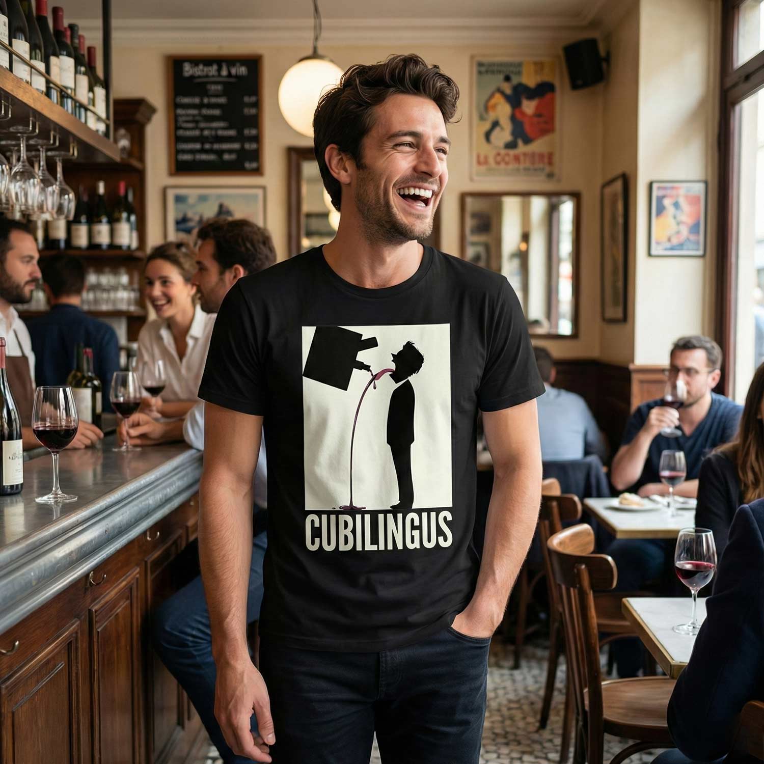 Un design qui fait mouche auprès des amateurs de vin et d’humour : le t-shirt « Cubilingus » détourne avec malice le mot bien connu pour en faire un jeu visuel simple, efficace et hilarant.